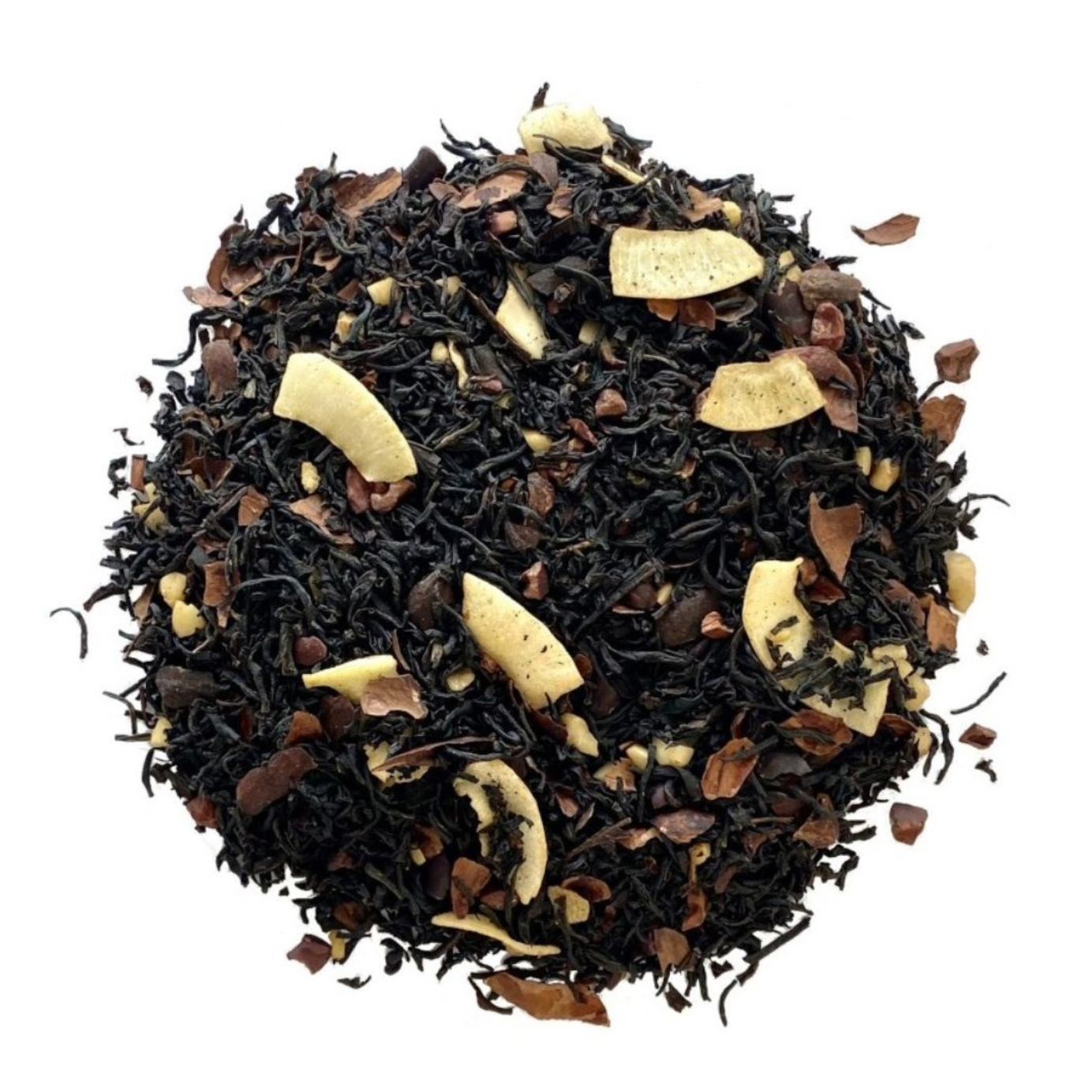 Ingrédients : Thé noir, coques de cacao (10 %), fèves de cacao (10 %), éclats de noix de coco torréfiés, amandes, arôme naturel de cacao
