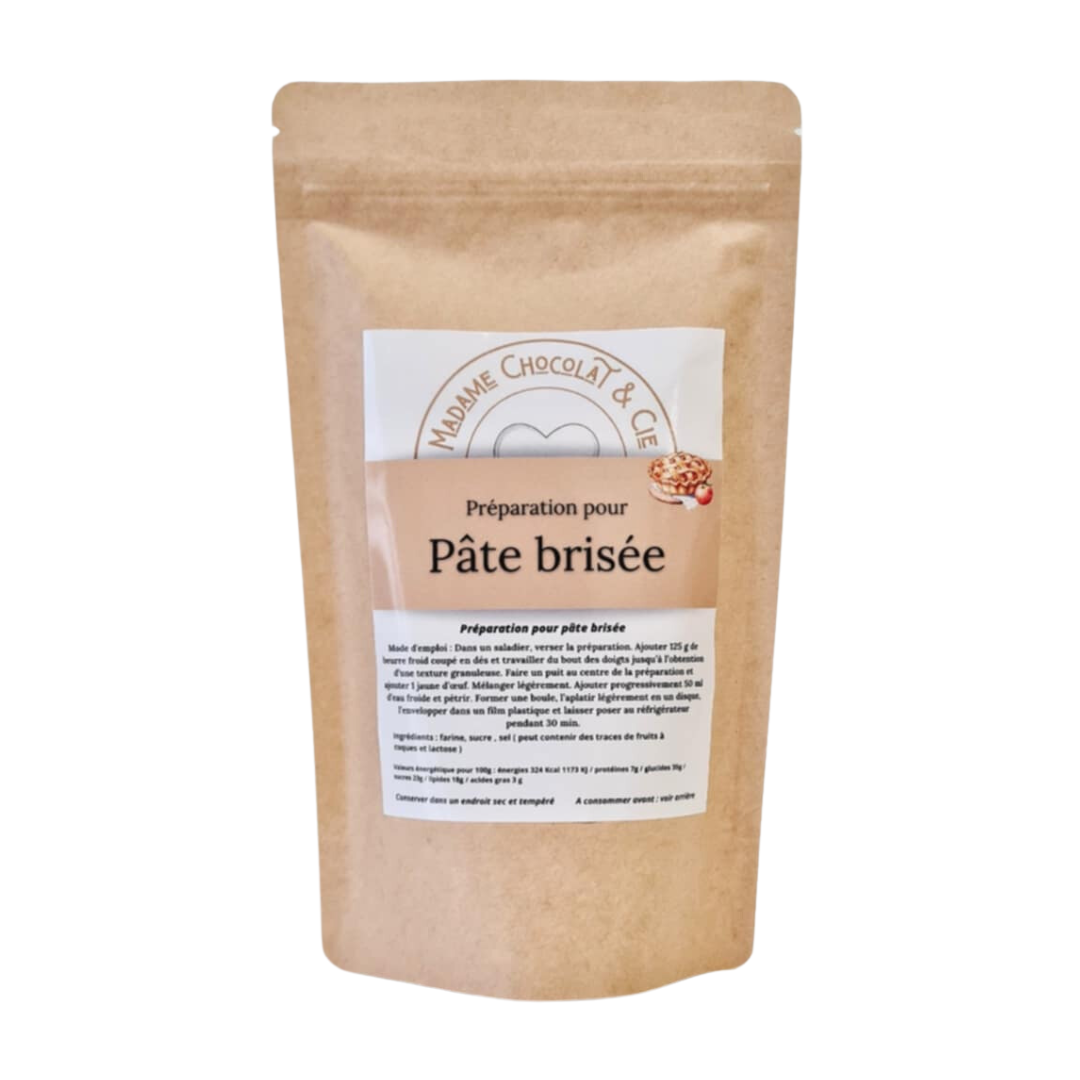 Mode d’emploi : Dans un saladier, verser la préparation. Ajouter 125 g de beurre froid coupé en dés et travailler du bout des doigts jusqu’à l’obtention d’une texture granuleuse. Faire un puit au centre de la préparation et ajouter 1 jaune d’œuf. Mélanger légèrement. Ajouter progressivement 50 ml d’eau froide et pétrir. Former une boule, l’aplatir légèrement en un disque, l’envelopper dans un film plastique et laisser poser au réfrigérateur pendant 30 min.