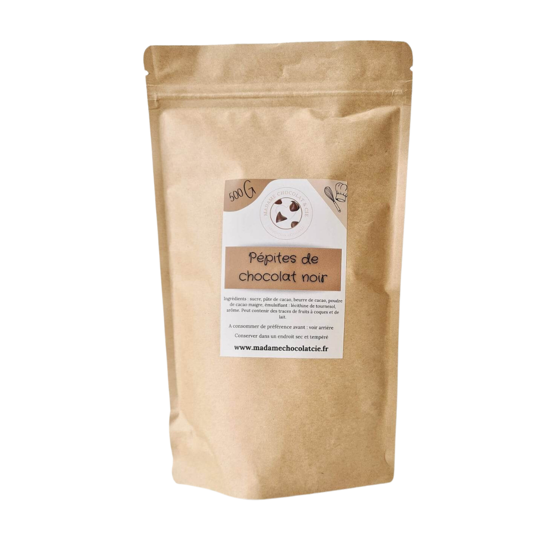 De délicieuses pépites de chocolat noir en vrac, pour agrémenter vos pâtisseries.